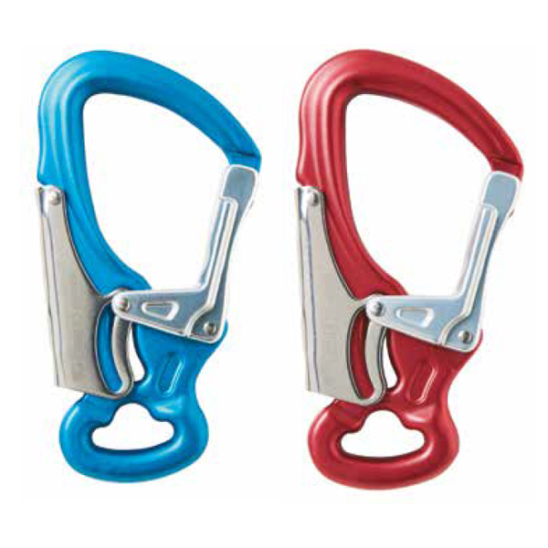 Keylock trigger carabiner. Opening system with palm pressure. Technical Information: Certification: CE, EN 362 • Keylock. • MBS : 3,300 daN. • L : 136 mm / W : 70 mm. • Opening : 26 mm. • Weight : 123 gr. • Blue: Reference RMQU223B • Red: Reference RMQU223R